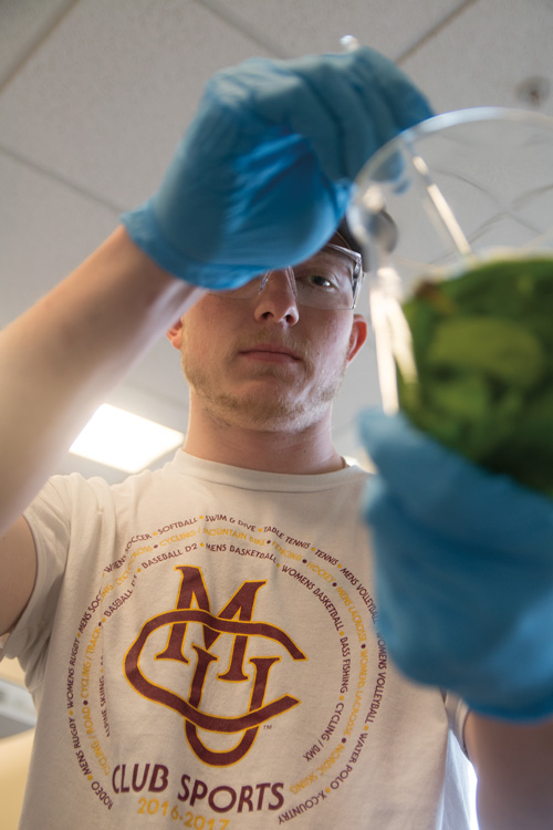 The Molecular Genetics Research Laboratory at Colorado Mesa University provides the space and equipment for research conducted with undergraduates and for class projects. The research conducted here include projects on the molecular basis for cell motility, the population genetics of polychaetous worms, the molecular phylogenetics of solanaceous plants, and the molecular characterization of biocontrol species. Classes that benefit from the lab include Genetics, Molecular Genetics, Laboratory Investigations in Cellular and Molecular Biology, Evolution, and Forensic Molecular Biology.