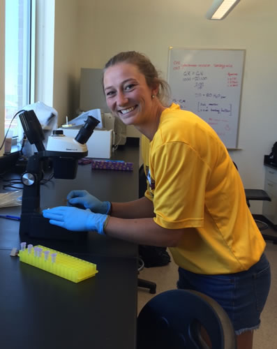 Molly Kubesh: Molly is earning her M.D./Ph.D. at Creighton University. Molly worked with Dr. Kyle McQuade as an undergraduate research student while at CMU.