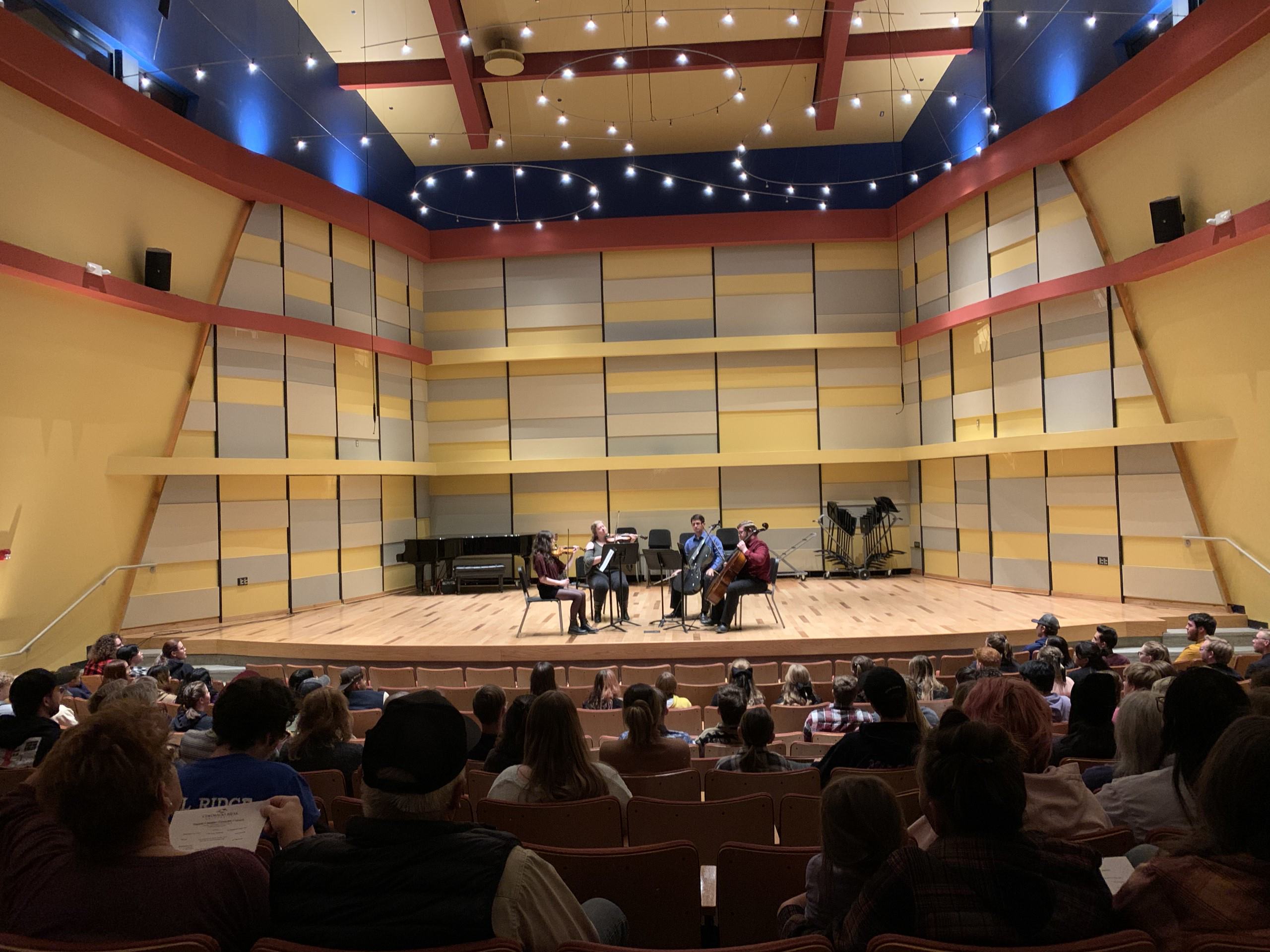 Playing in a chamber ensemble is required for string majors, encouraged for minors, and an option for anyone else interested who has experience and has auditioned. Chamber music is one of the most valuable mediums for string students to grow as musicians, as it mixes the best of both worlds: ensemble and solo playing.