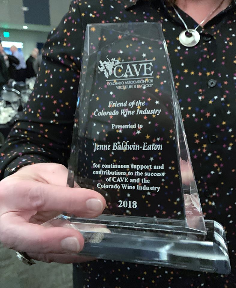 “Jenne has worked tireless not only to perfect her own craft but has gone to great lengths as an instructor and as an artisan to advance the interest of viticulture and enology in Colorado,” said Cassidee Shull, CAVE executive director.