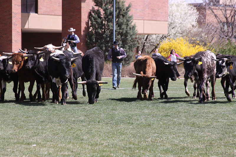 CMU will kick off the rodeo weekend festivities on Thursday, April 11, at 11:45am with the rodeo team’s annual Steer Stroll. The stroll is one of the most entertaining on-campus events of the year as the team drives a herd of cattle across campus for students to observe.