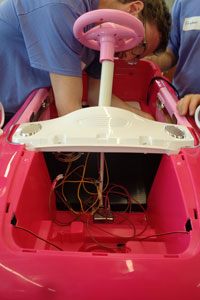 Students worked together adapting the car to the needs of the child. They rewired foot controls and hand buttons, added parent steering and rewired and moved the master controls to the back of the vehicle.