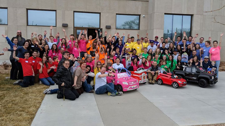 Therapists identified children they work with who would benefit most from independent mobility. They then chose ride-on, electric cars based on the child’s needs. The cars, donated by NuMotion, varied from a bright red firetruck to a pink Minnie Mouse Benz and a black GMC Denali.