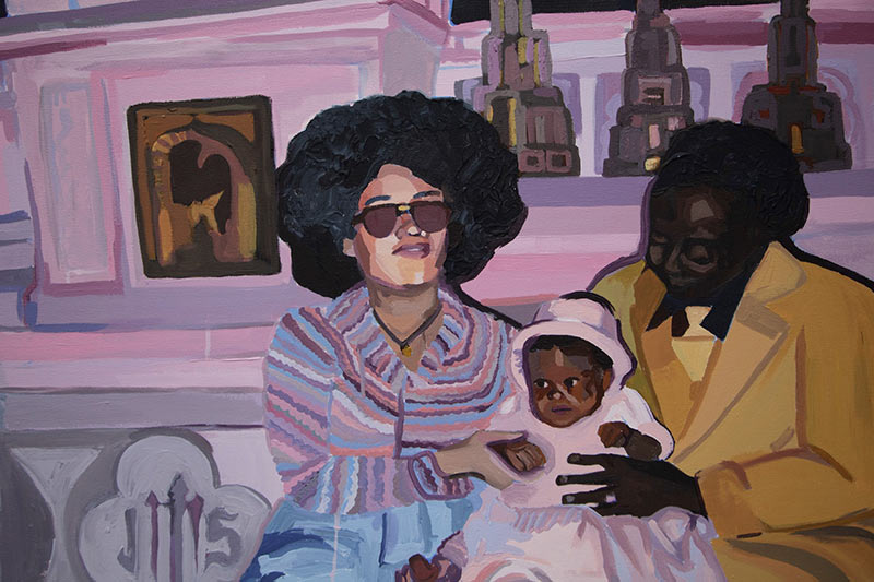 Addie Mingilton is an acrylic painter whose work addresses representations of the minority figure in art. Her paintings depict the everyday life of her mixed-race family.