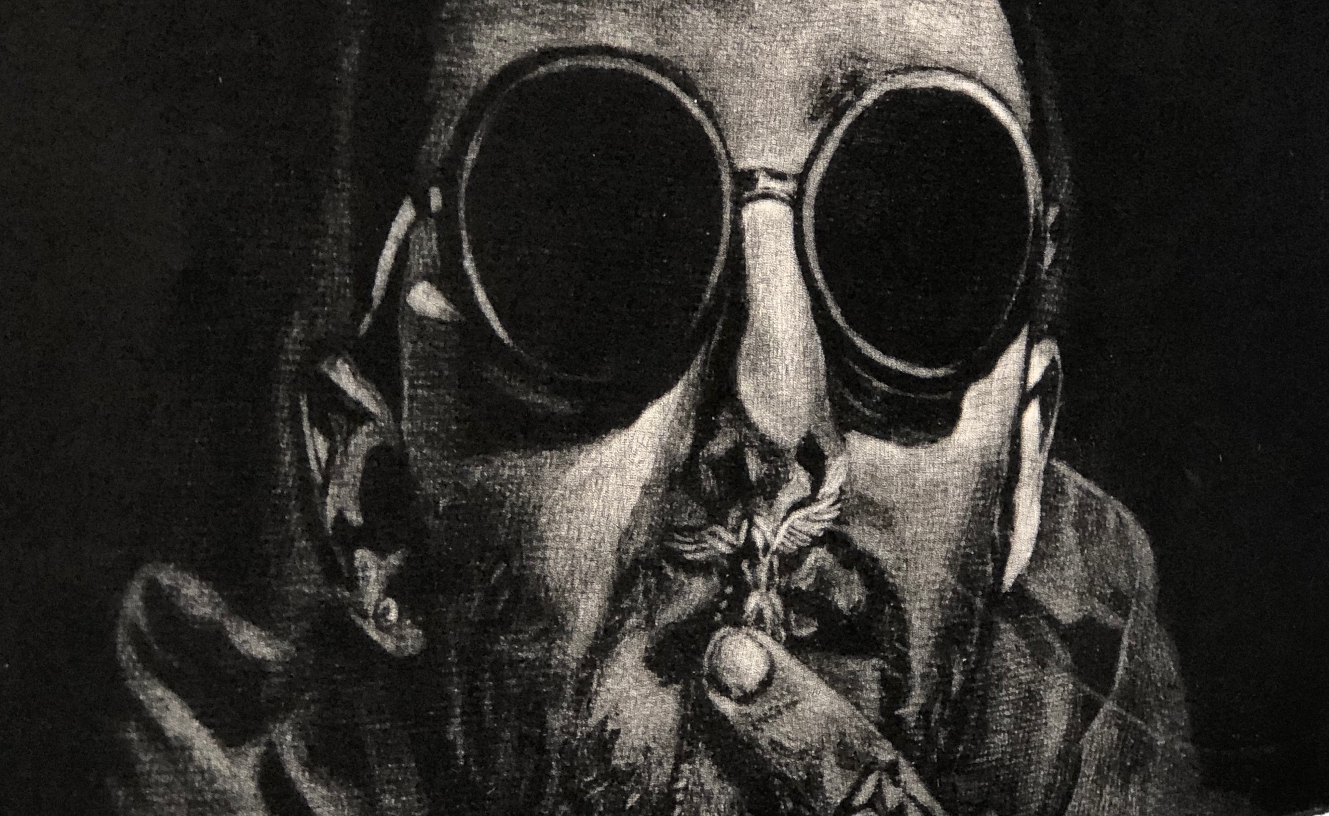 Charli Gonzales creates mezzotint prints of figures juxtaposed with physical mementos to explore the idea of the memento mori, or reminder of death. The mezzotint process involves burnishing highlights from a specially prepared plate that prints as black, giving her figures the appearance of emerging from the shadows.
