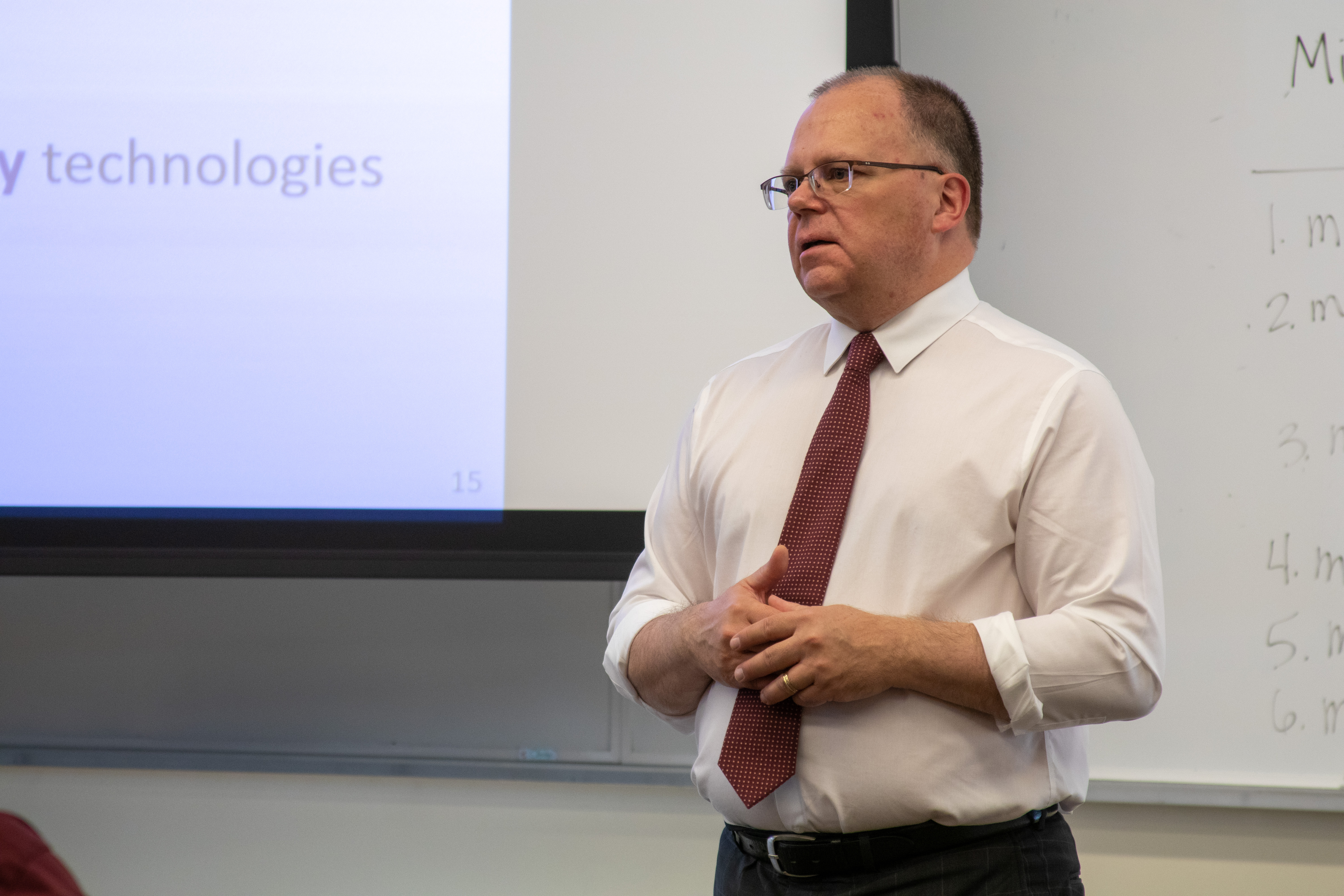 The unsecured boundary between Canada and the United States is a political line and is transcended by culture, custom and economy. This was part of the message shared by Canadian Consul General Stephane Lessard as he spoke of the common ground shared between the U.S. and Canada when addressing students and faculty in Houston Hall. Lessard visited CMU on November 11 and engaged students through the course of three events on campus.