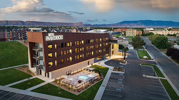 Hotel Maverick features 60 guest rooms and suites, a combined 3,793 square feet of meeting and event spaces, a heated outdoor soaking spa and a fitness center with Peloton equipment. The hotel's elevated dining experiences include Devil's Kitchen, a farm-to-table concept with panoramic views of the Grand Mesa and Colorado National Monument, and artisanal coffee and grab & go treats from Betty's Gourmet Coffee. Surrounded by the natural beauty of Colorado's Grand Valley, guests are steps away from student life on the CMU campus, including the Eureka! McConnell Science Museum and undergraduate residence halls.