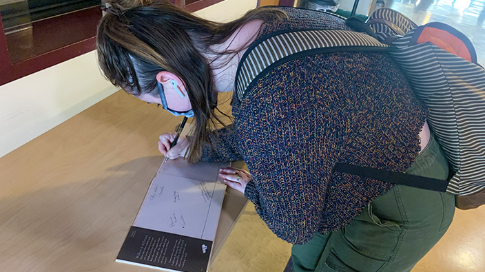 Two copies of the book, signed by the CMU cast and its director, Jeremy Franklin, have been donated —one to the Fruitvale Elementary School library and one to Angalena Uribe-Drake.