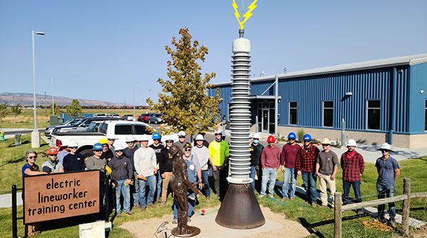 Training people to deliver electricity safely and reliably is the easiest way to explain WCCC's Electric Lineworker Program. While the facility is filled with students busily learning how to maintain the U.S. electric grid, all of them stopped to take part in hoisting and fastening Nichols' sculpture now permanently displayed at the entry of the center.