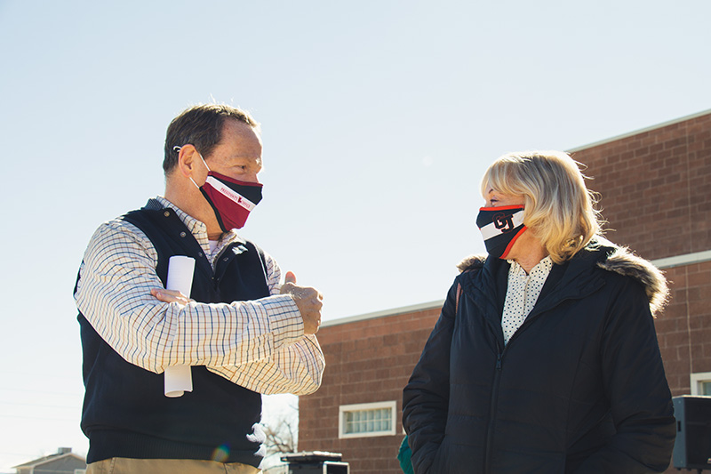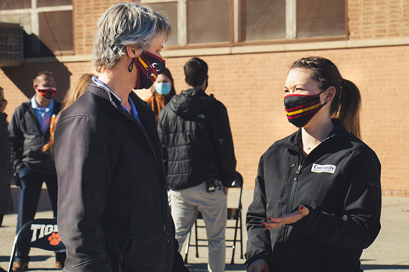 Rose joined CMU President Tim Foster as a speaker during the community announcement February 18, 2021. The two also spoke after the event about how programs like PTECH help students. Foster is known for his ability to connect directly with students. This skill was evident during the PTECH announcement.
