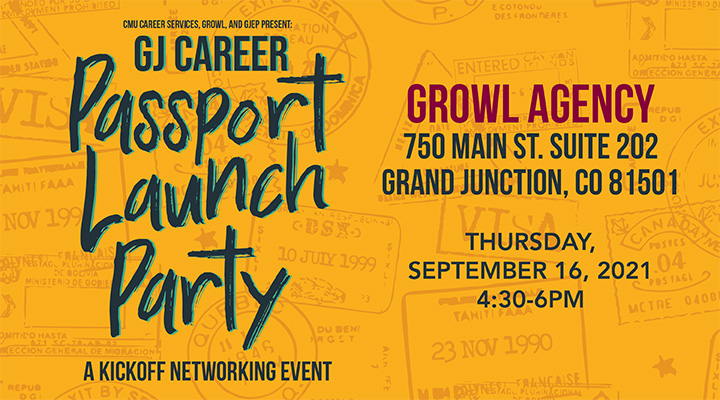 The GJ Career Passport Program kick-off event is scheduled for Thursday, September 16 from 4:30-6:00 p.m. at the GROWL Agency on 750 Main Street in Grand Junction. Event details and RSVP are available on the CMU Career Services Facebook page.