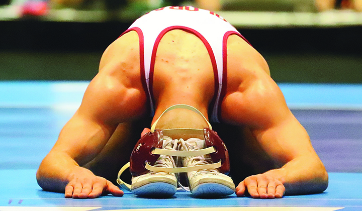 Fred Green, a 5th year wrestler, who worked towards his Master of Business Administration degree this year, captured top honors as an NCAA Division II wrestling champion in the 165-pound class. At the end of his match, Green signified the triumphant end of his competitive wrestling career by participating in the wrestling tradition of unlacing his shoes, removing his headgear, placing them on the mat and kneeling behind them. Green is a transfer athlete who began his collegiate wrestling career at Boise State University. He arrived at CMU in the fall of 2019 when his coach, Mike Mendoza, accepted a position with the Mavericks.