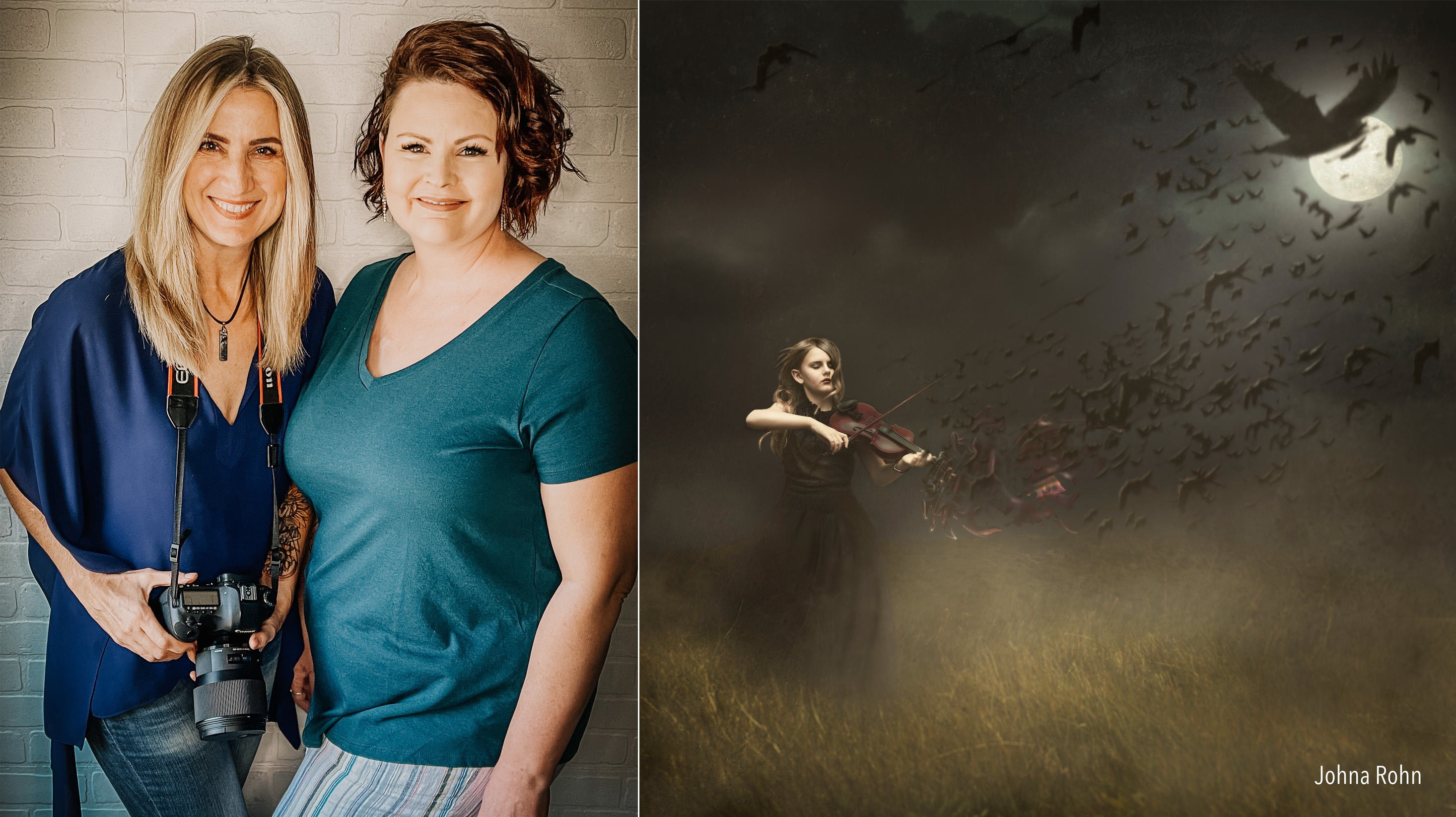 Together the trio of alumnae created a stellar set of promotional posters for the four big upcoming shows, each with lunar elements incorporated into the design. “This project was absolutely a great fit for my creative style. I love to create dramatic images that tell a story,” Rohn said. “Even though this project isn’t really using my degree, I suppose it is somewhat pivoting from that. We are indeed telling a story using elements of costume, make up, lighting, emotion and movement, even if it is in just one frame. Plus, the casting of the characters had to be spot on.”