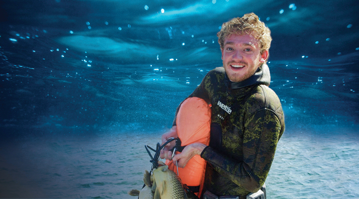 Fleury’s introduction to spearfishing came from his love for swimming and the friendships he forged at CMU. It all began in 2020 when the College Club Swimming National Championship was cancelled due to the pandemic. Fleury embraced the cancellation as an opportunity to explore new ways to have fun in the water and became scuba certified through a class at CMU. He went on to complete an advanced scuba course and one of his friends in the course invited him on a spearfishing trip to Moki Canyon at Lake Powell. took to spearfishing quickly and was soon entering local and regional competitions.