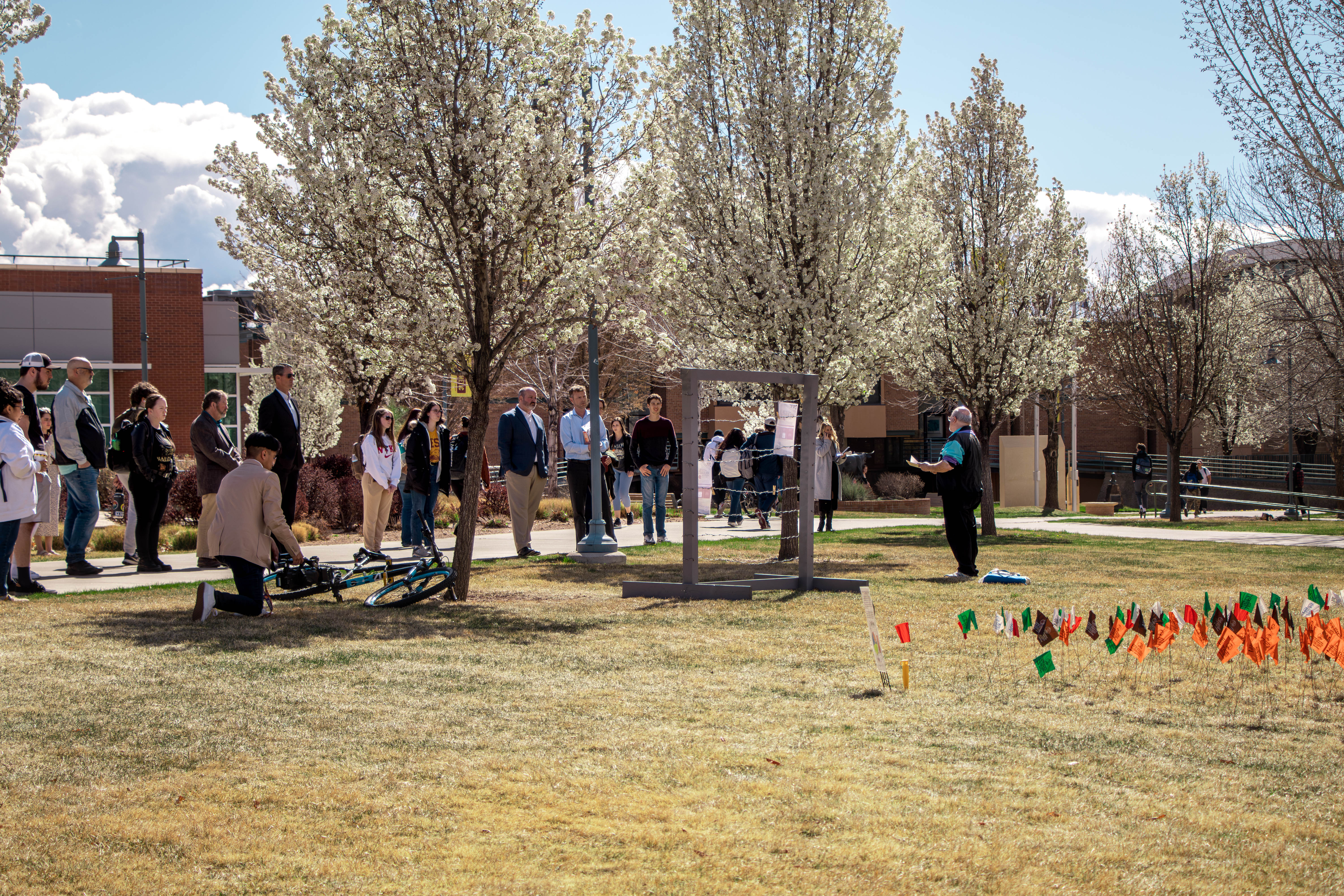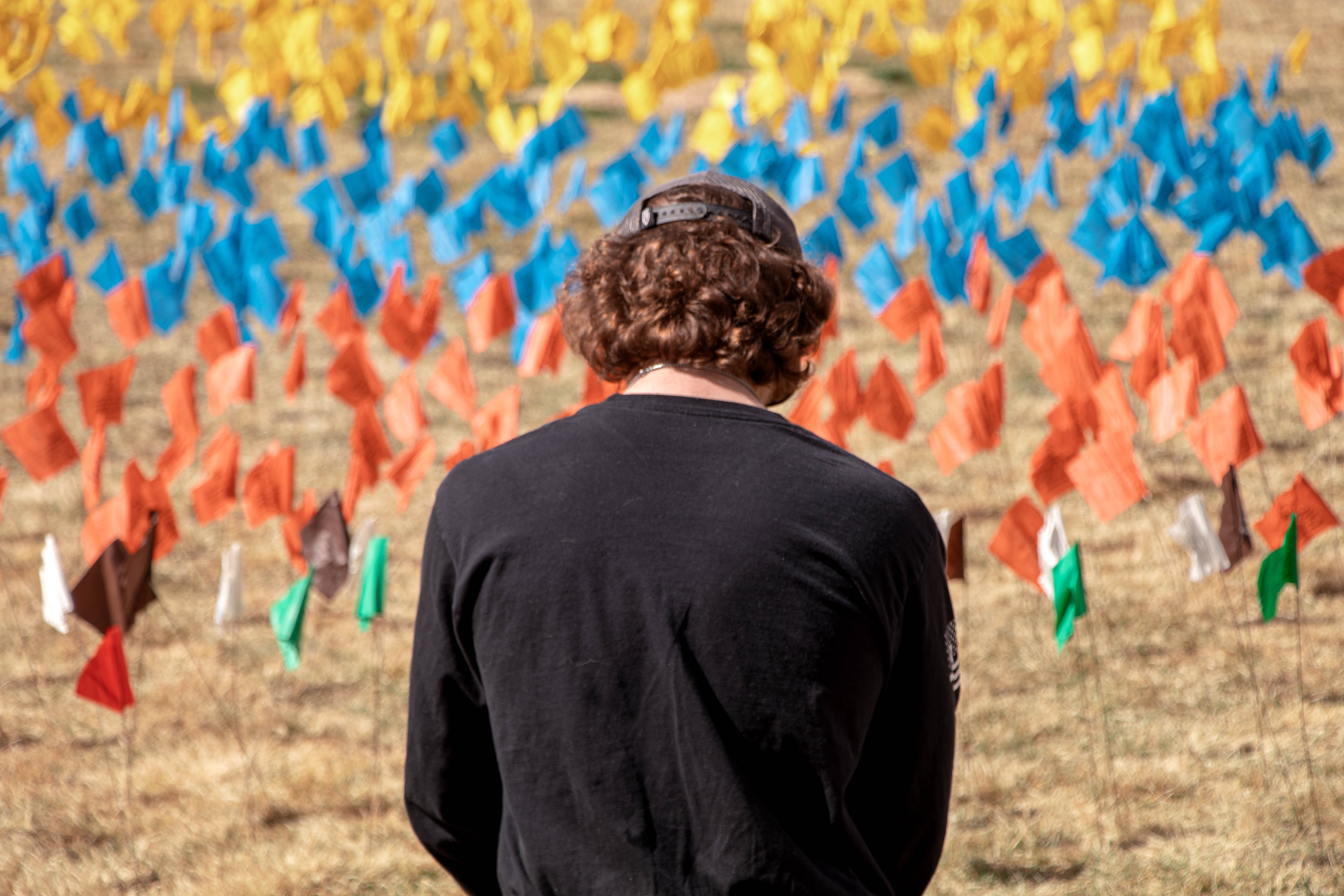 The series began with a moment of silence in front of the field of flags display, which was constructed by CMU students from various majors in addition to faculty, staff and community members. The display’s 2,000 flags represented the major groups targeted by Nazis during World War II, with each flag representing 5,000 individuals and each color representing the group targeted.
