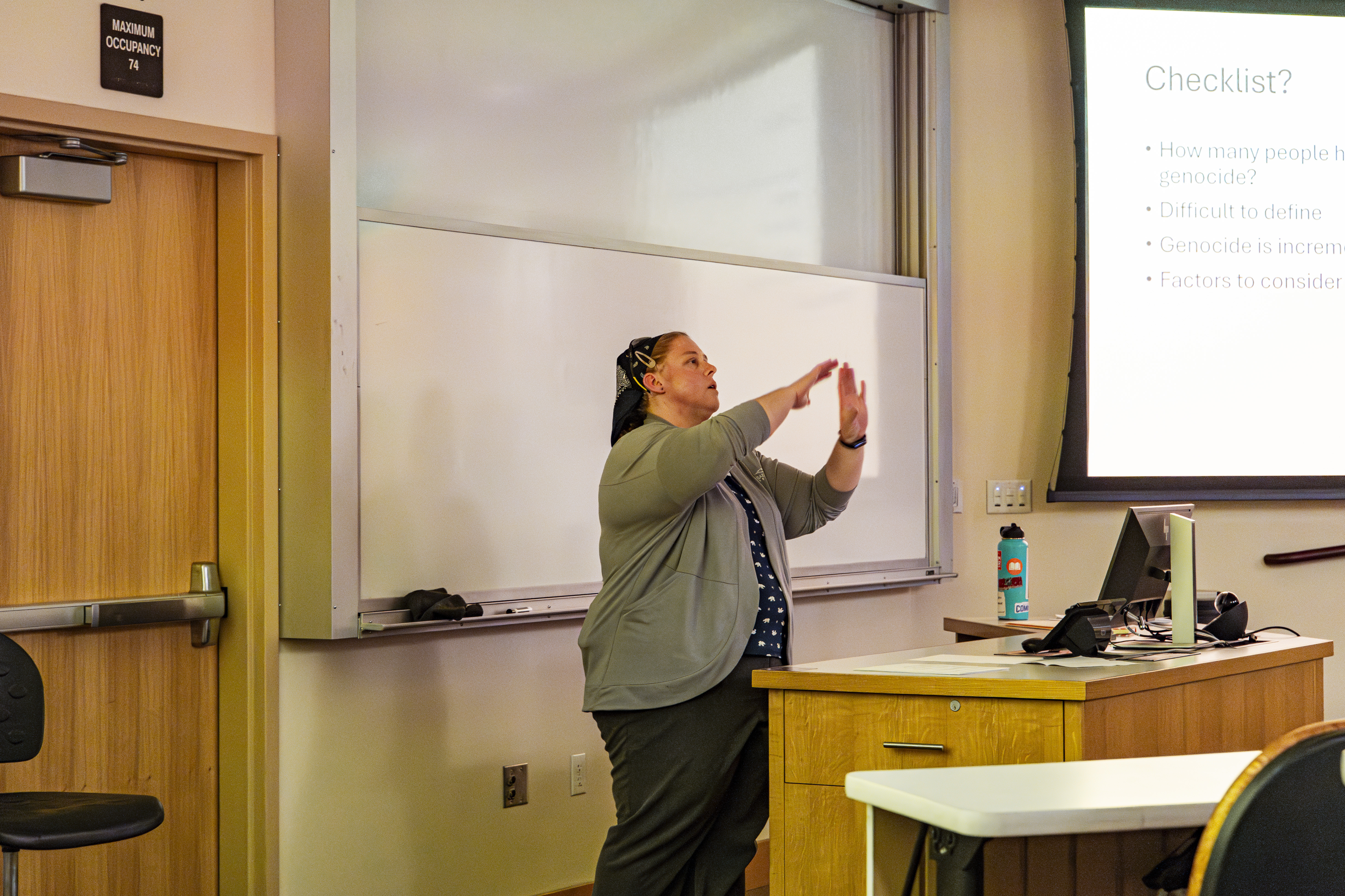 Seminars in the series included Gendercide: A Comparative, Historical and Global Discussion, led by Assistant Professor of Political Science Holly Oberle, PhD, and The Rohingya: Myanmar’s Persecuted Minority led by Adjunct Instructor of English Jessica Bertrand. Both seminars further educated attendees on the broader context of genocides and their lasting impacts on societies.