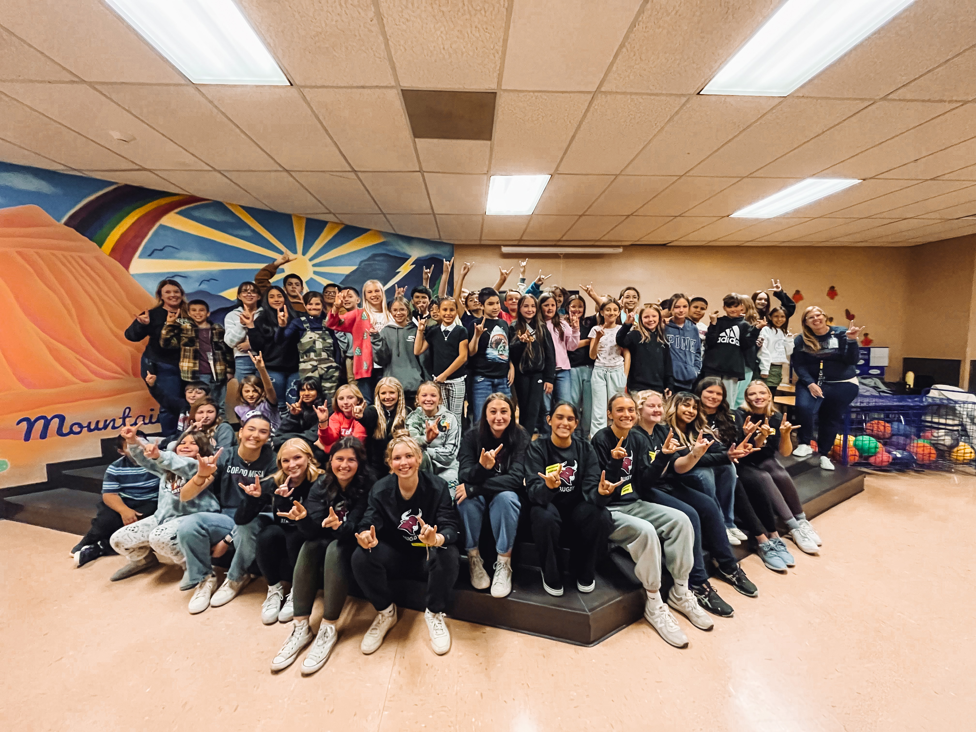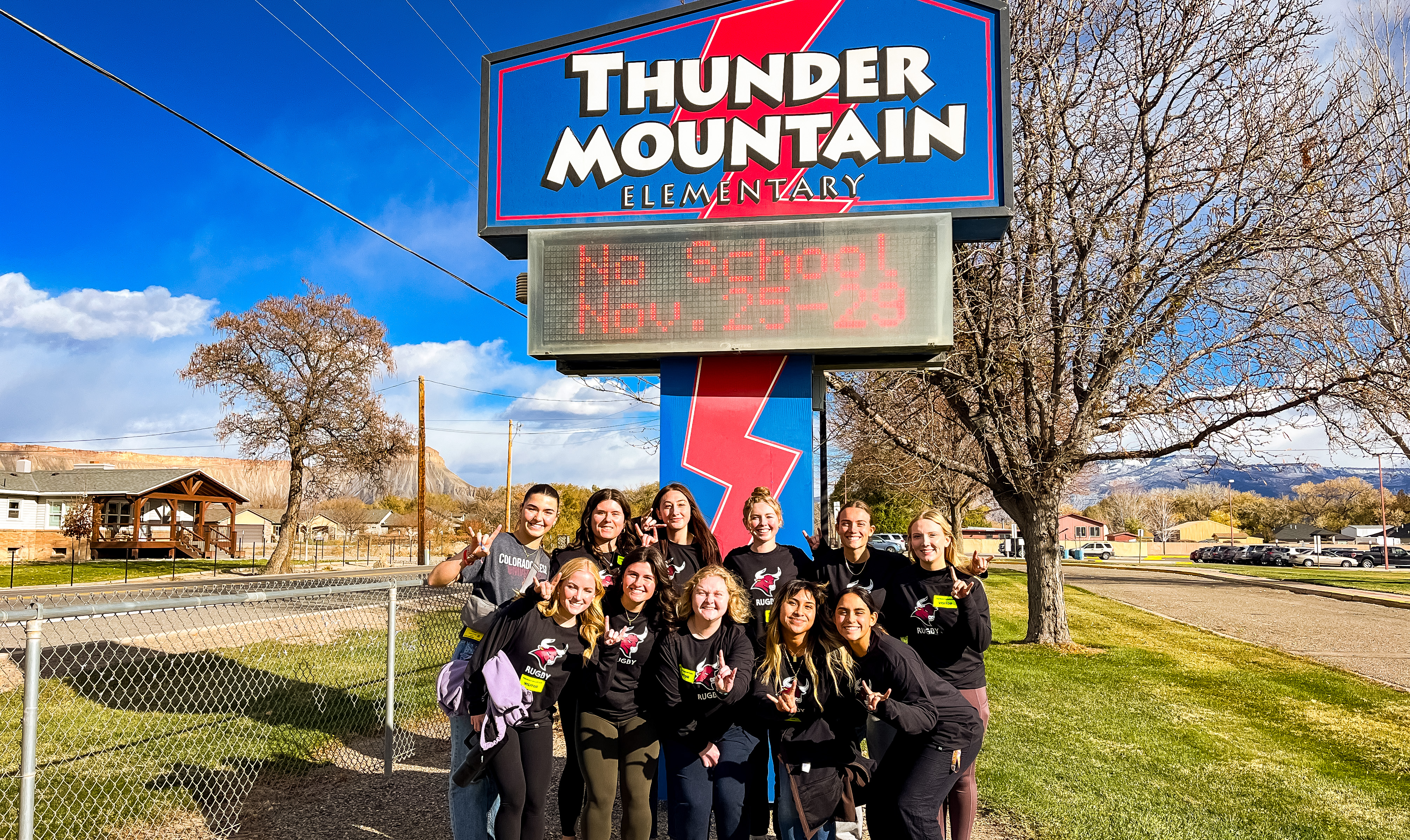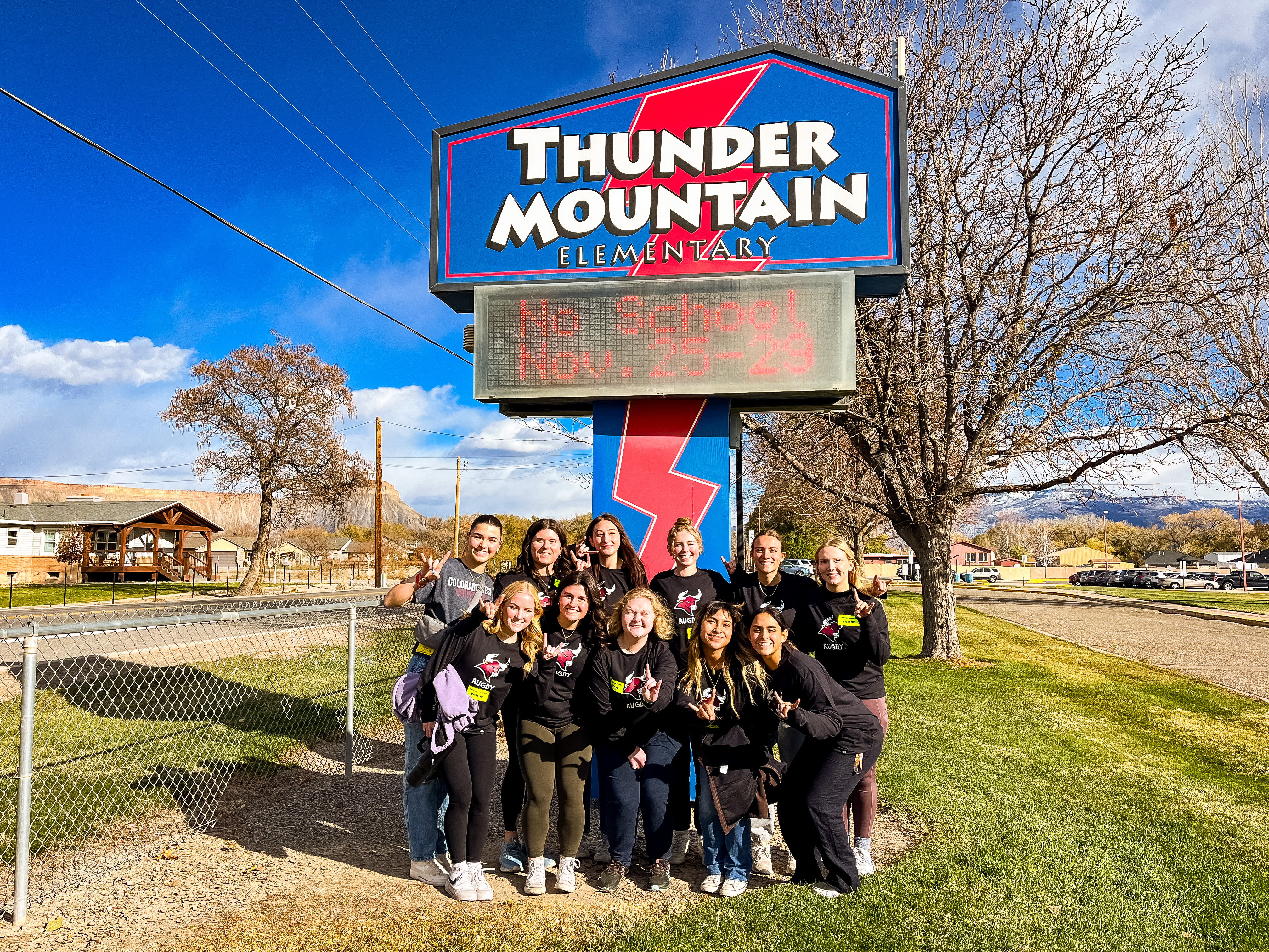 On November 19, the Colorado Mesa University Women’s Rugby team visited Thunder Mountain Elementary as part of the Where We Become Mavericks initiative. This program connects CMU student-athletes with local District 51 elementary students to inspire a love of learning and build community.