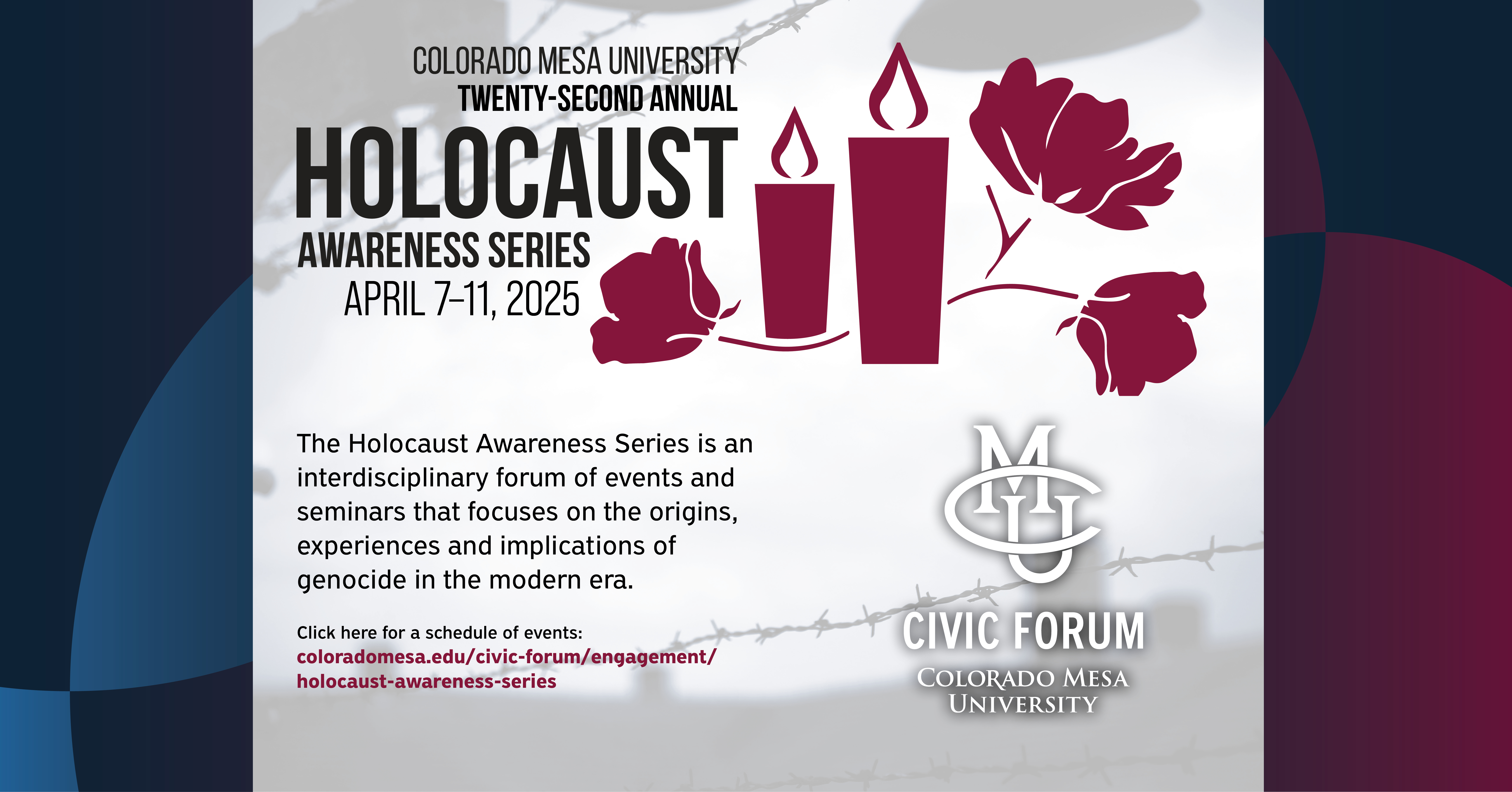 For a full schedule of events or more information, visit coloradomesa.edu/civic-forum/holocaust-awareness-series