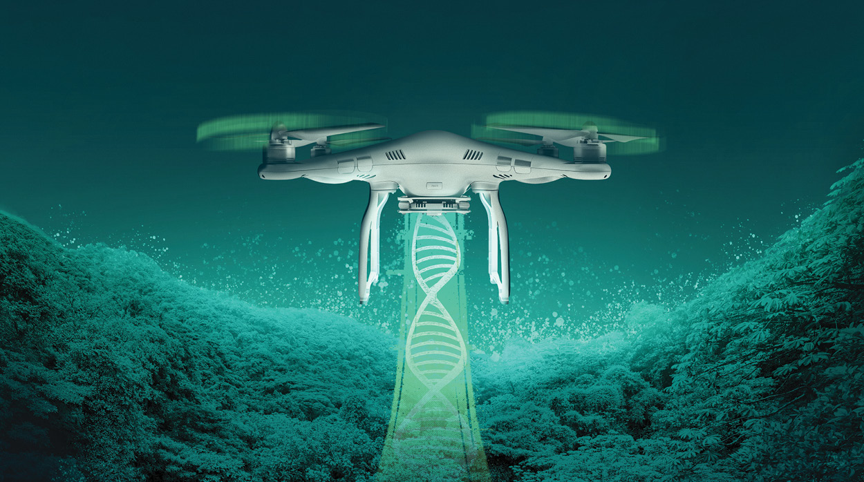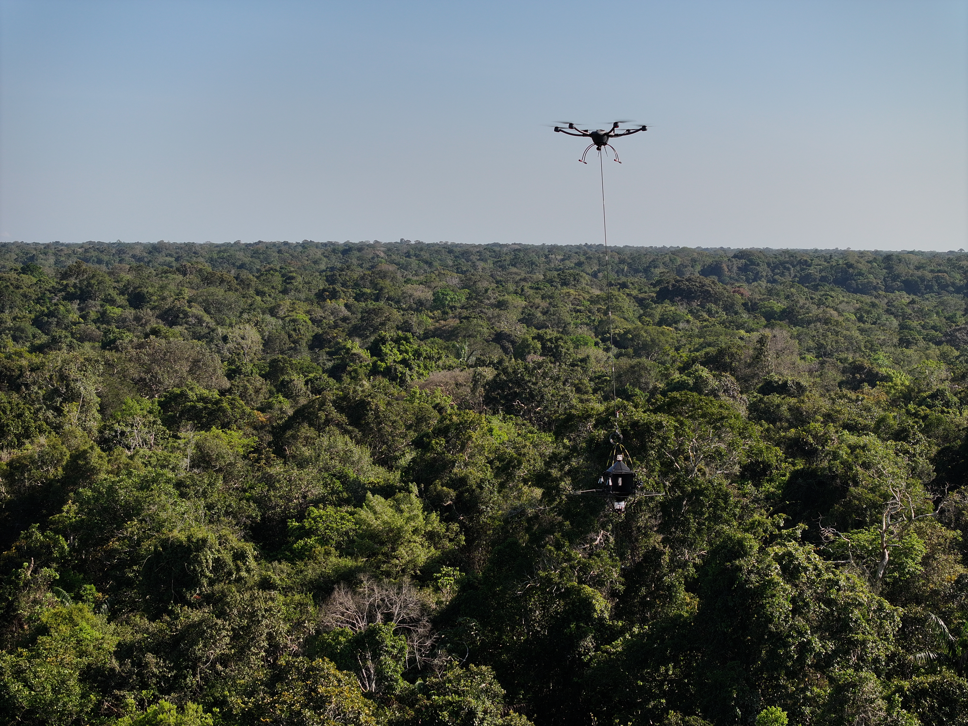 The same technology can be applied to sound. So, while they collected data on the insects below the canopy, they also used drones to capture the sound waves of birds high above the forest floor to analyze the sonograms. The drones were also used to pump water from the jungle floor so the team could extract and measure DNA cells left in the water. A wide variety of species were identified — from jaguars and monkeys to pink river dolphins.