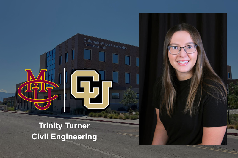 Trinity Turner, a senior at Colorado Mesa University, demonstrated remarkable dedication and talent when awarded the Academic Engagement Department Award with the Civil, Environmental and Architectural Engineering Department [based in Boulder, CO]. Turner is the first civil engineering student from CMU’s side of the program to receive a department award from the partnership program.