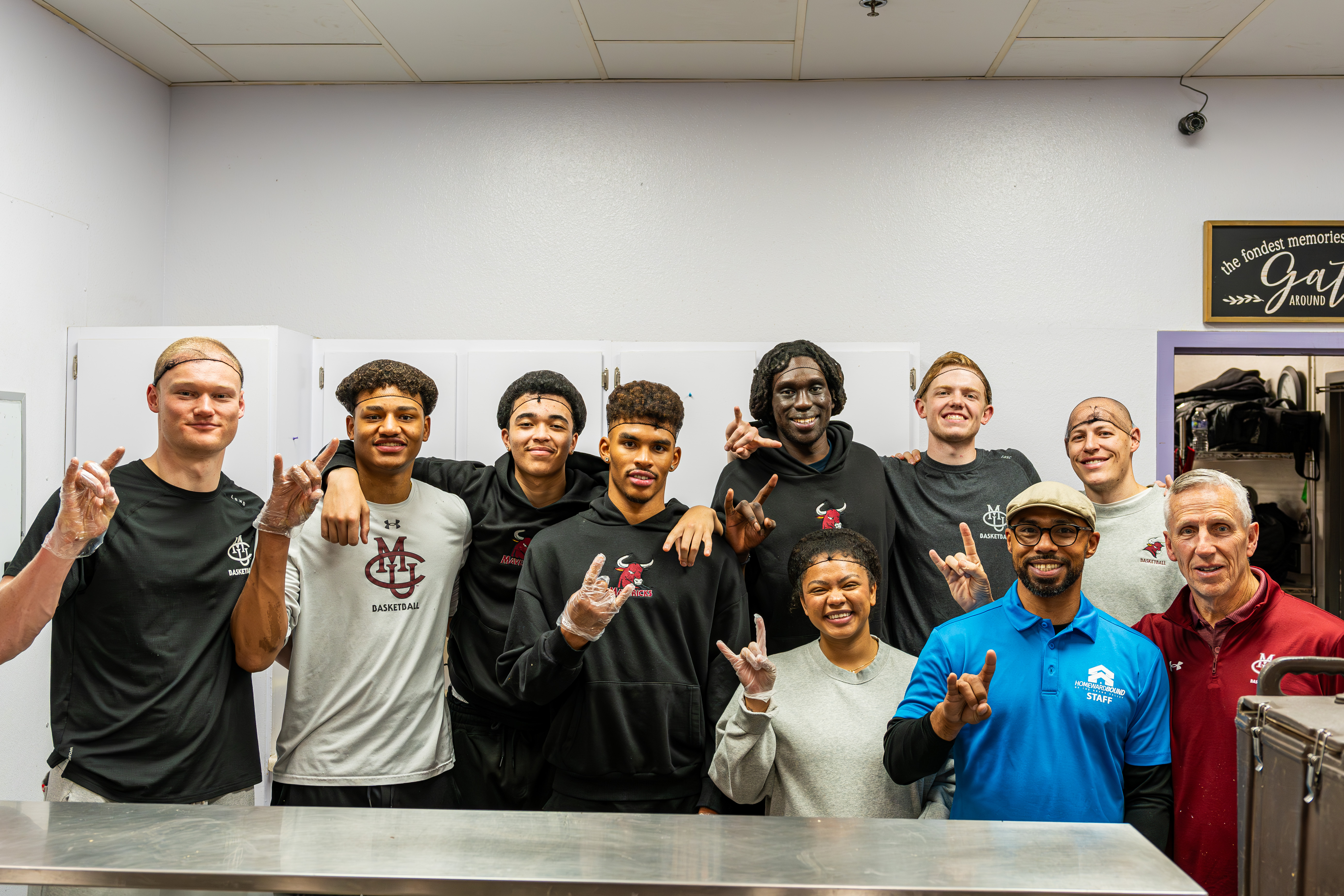 Another team making a difference in the Grand Junction community is the Men’s Basketball Team, who took action by feeding people in need during the holidays. During the week of Thanksgiving, the team suited up in gloves and hairnets (just hours after playing a late-night game) to volunteer at HomewardBound Pathways Shelter, a hub in Grand Junction that provides emergency shelter for unhoused families and individuals. Players cooked and served breakfast to over 150 guests that day.