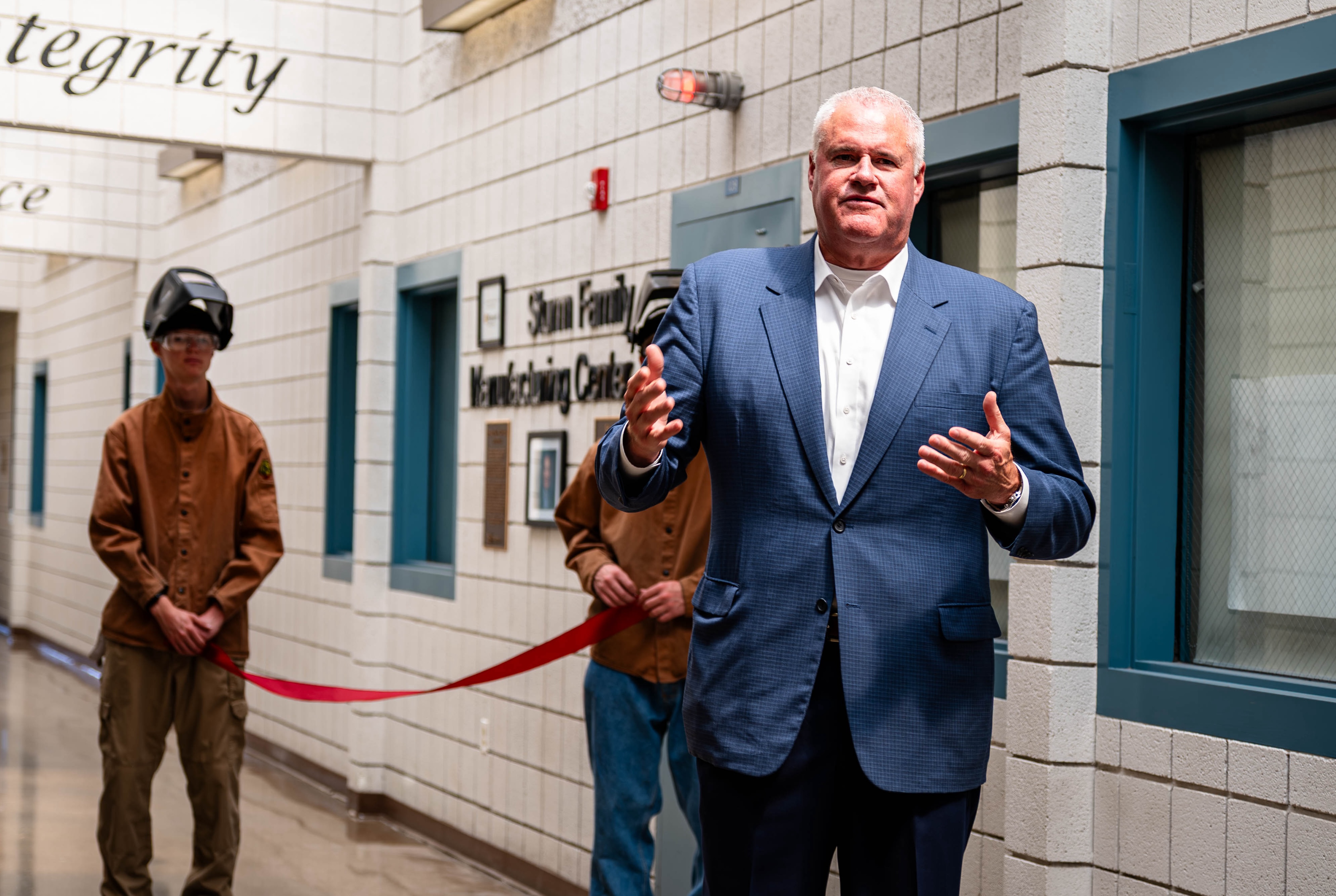 After the ribbon-cutting, donors and industry leaders toured the expanded space and viewed the welding and mechatronics mobile learning labs. For Glaser, the visit confirmed that CMU Tech is building something extraordinary.