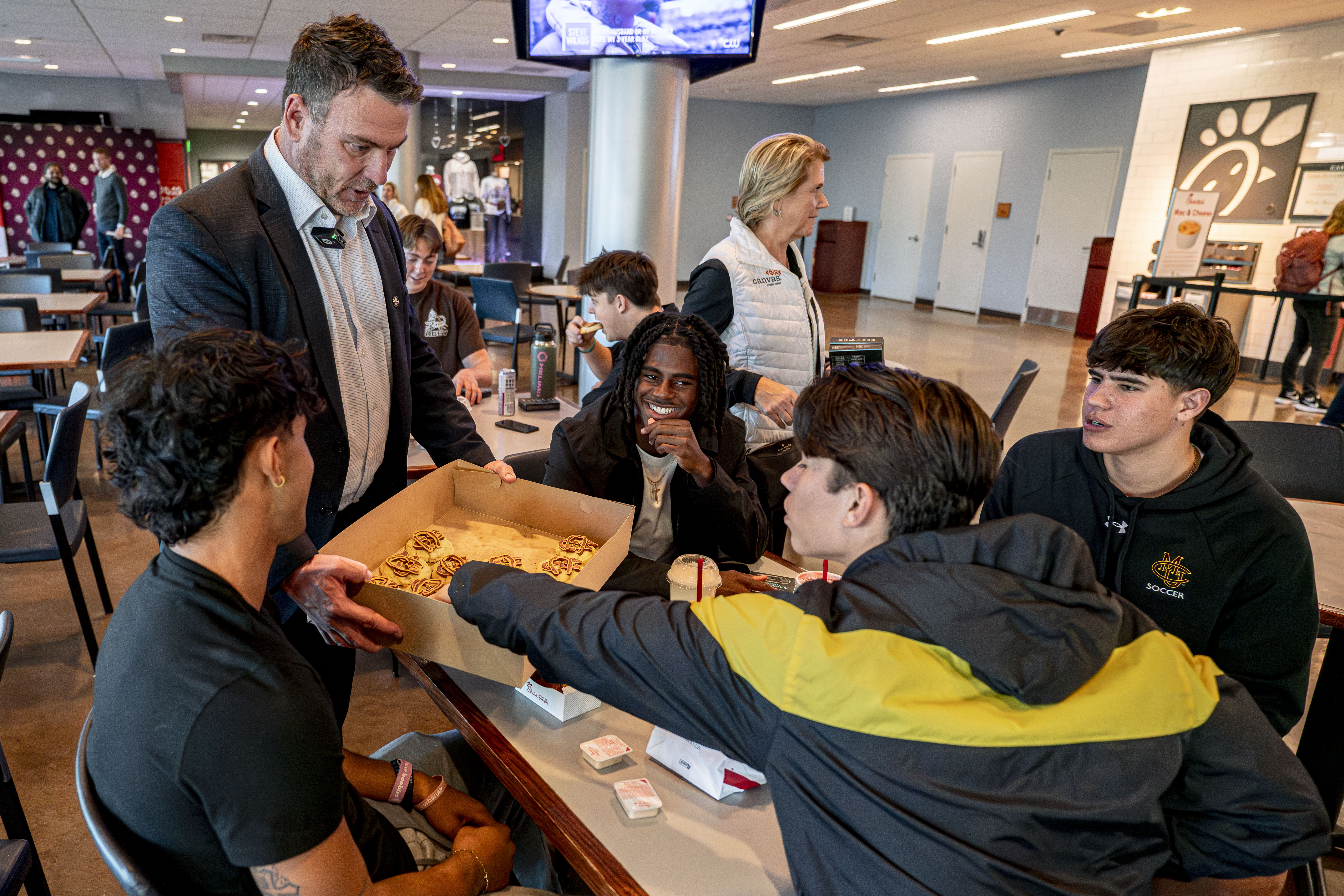 The announcement began in the University Center, the vibrant heart of campus, where students gather to eat, connect and unwind. This central location provided the perfect backdrop for unveiling the partnership, highlighting its significance to the student body and their daily campus life.