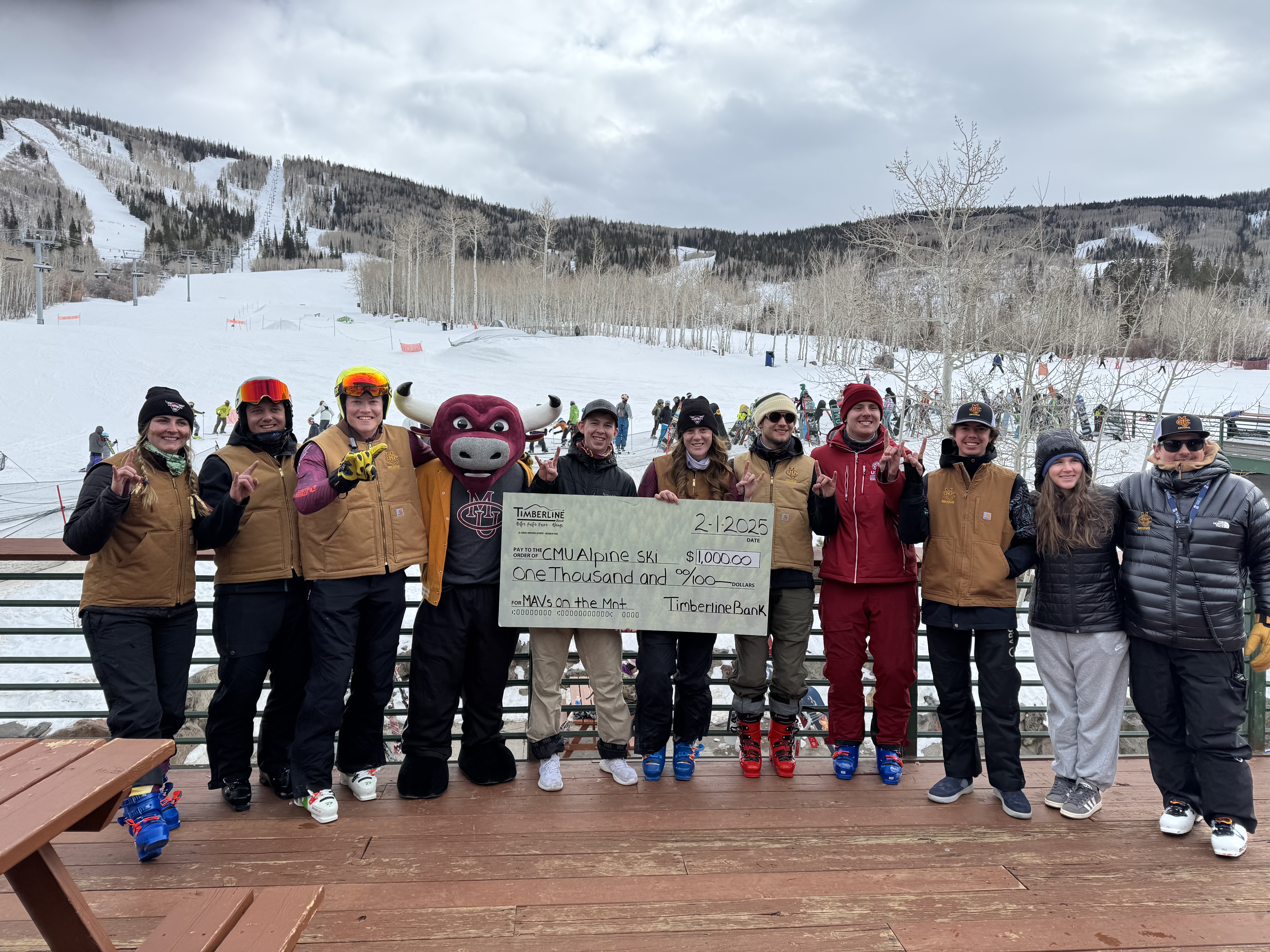 As the sun came out, Timberline Bank joined the excitement to present the Colorado Mesa University Alpine Ski Team with a $1,000 check. This generous gift will help support the team with travel, equipment and other necessities that drive their success. Mavs Take Over the Mountain took place during the third weekend of racing for the team this season.