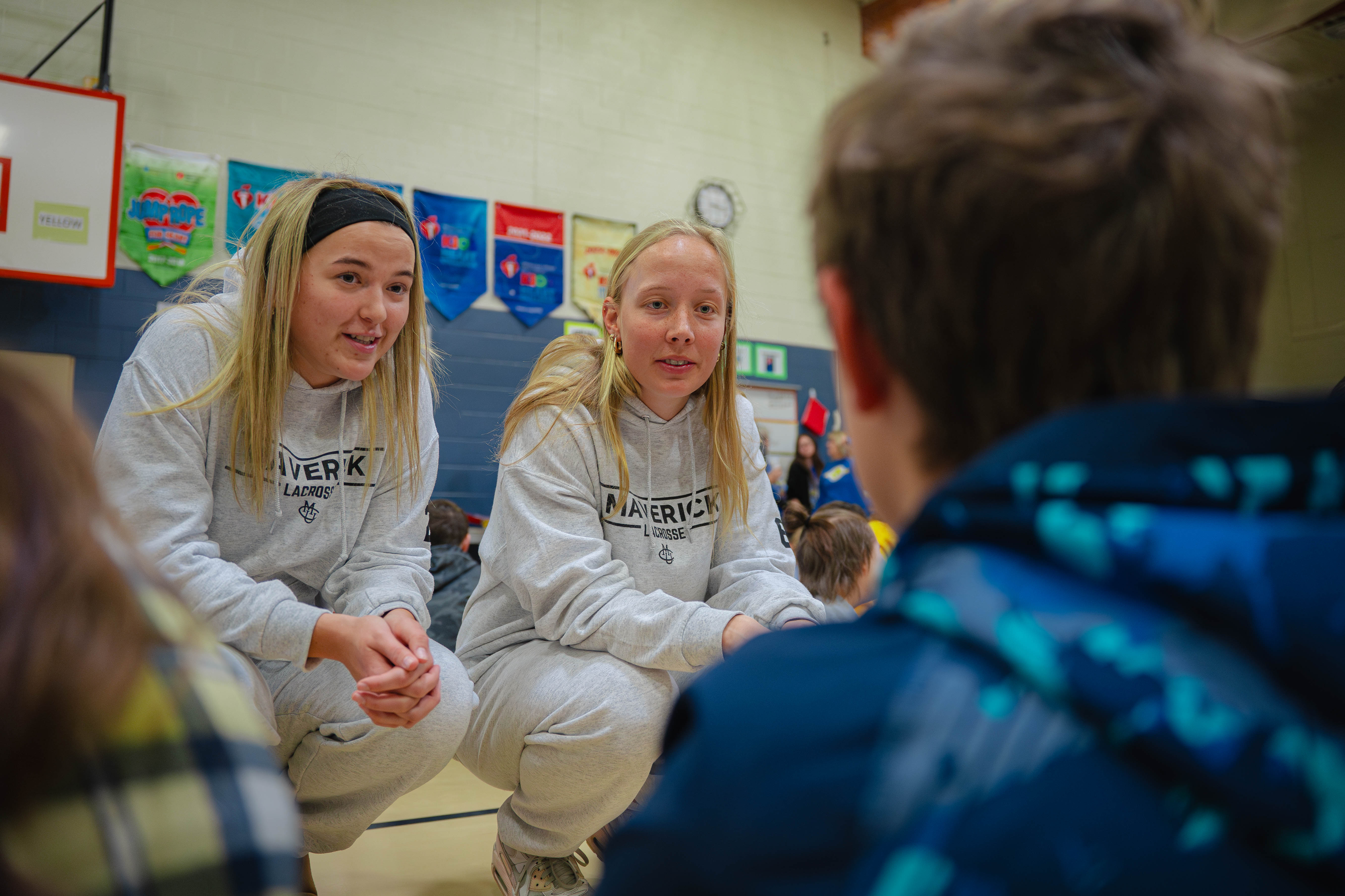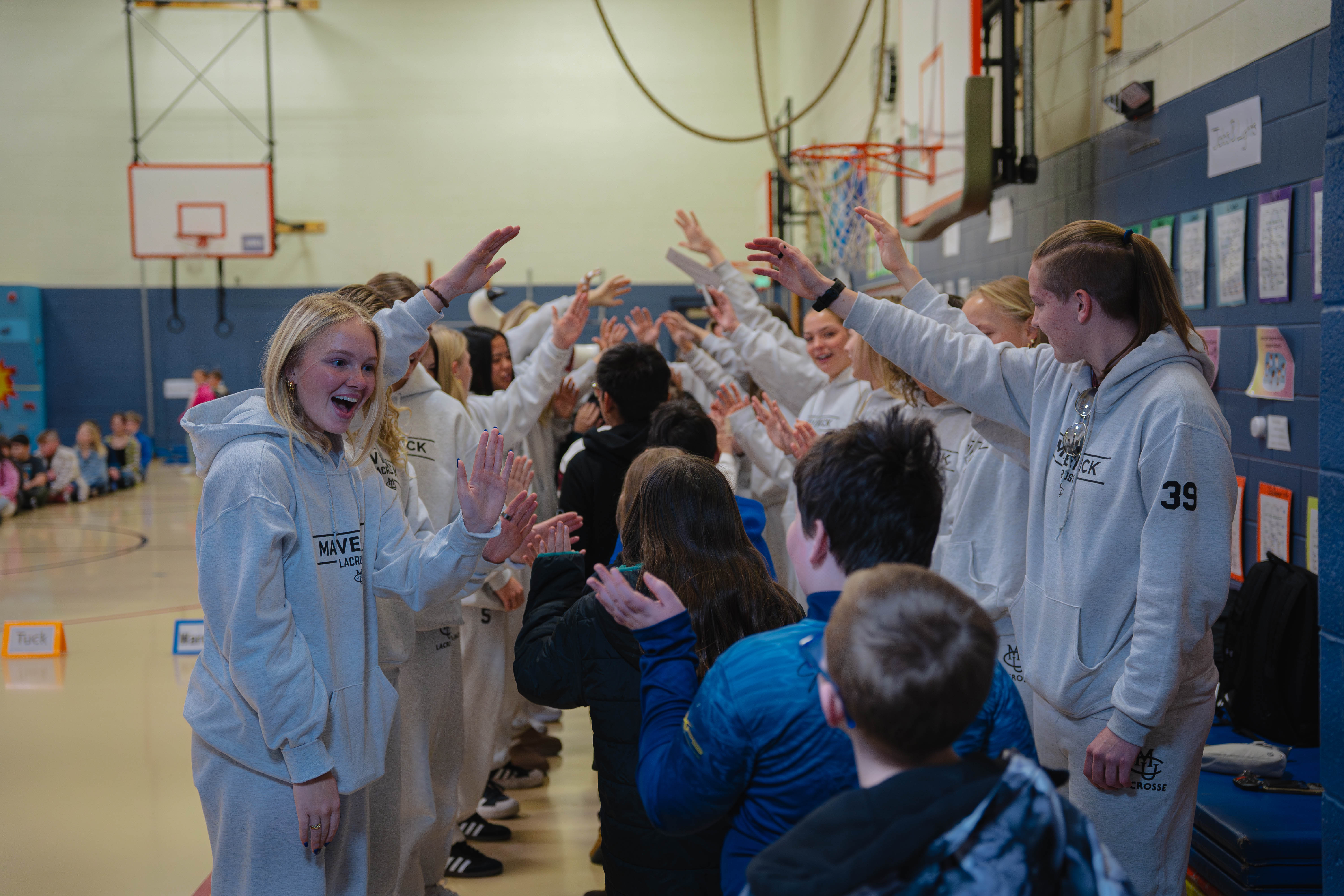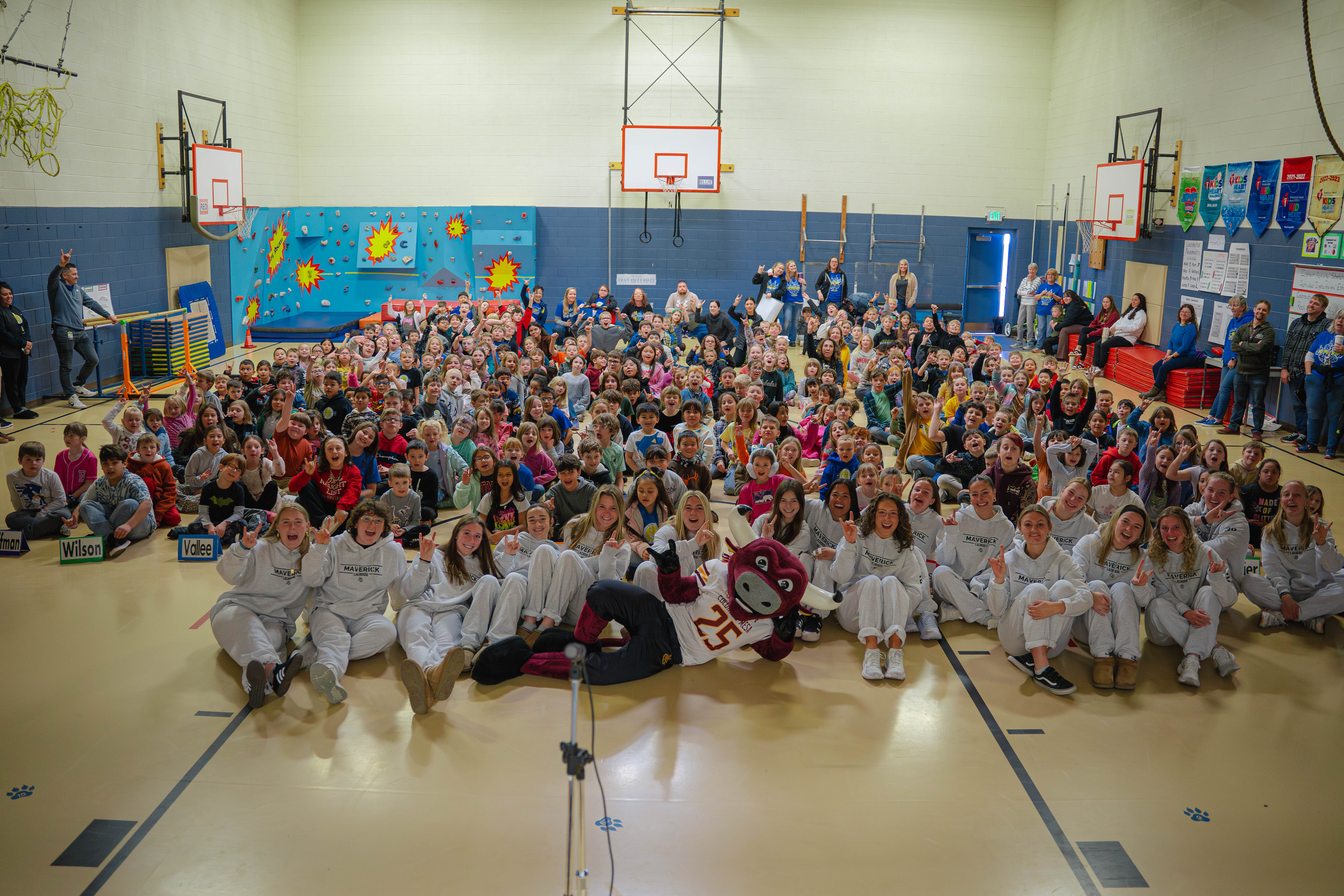 The Colorado Mesa Women’s Lacrosse Team had an amazing time visiting Lincoln Orchard Mesa Elementary (LOME) to promote higher education as part of the Where We Become Maverick's initiative, where CMU athletic teams visit elementary schools around Mesa County School District 51. The team enthusiastically welcomed students into the gym for one of LOME's ROAR rallies, standing for respect, on-task, always safe and responsible. They focused on relating LOME's value of respect to CMU's value of dignity.