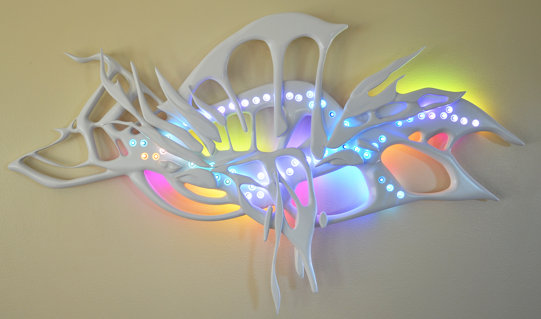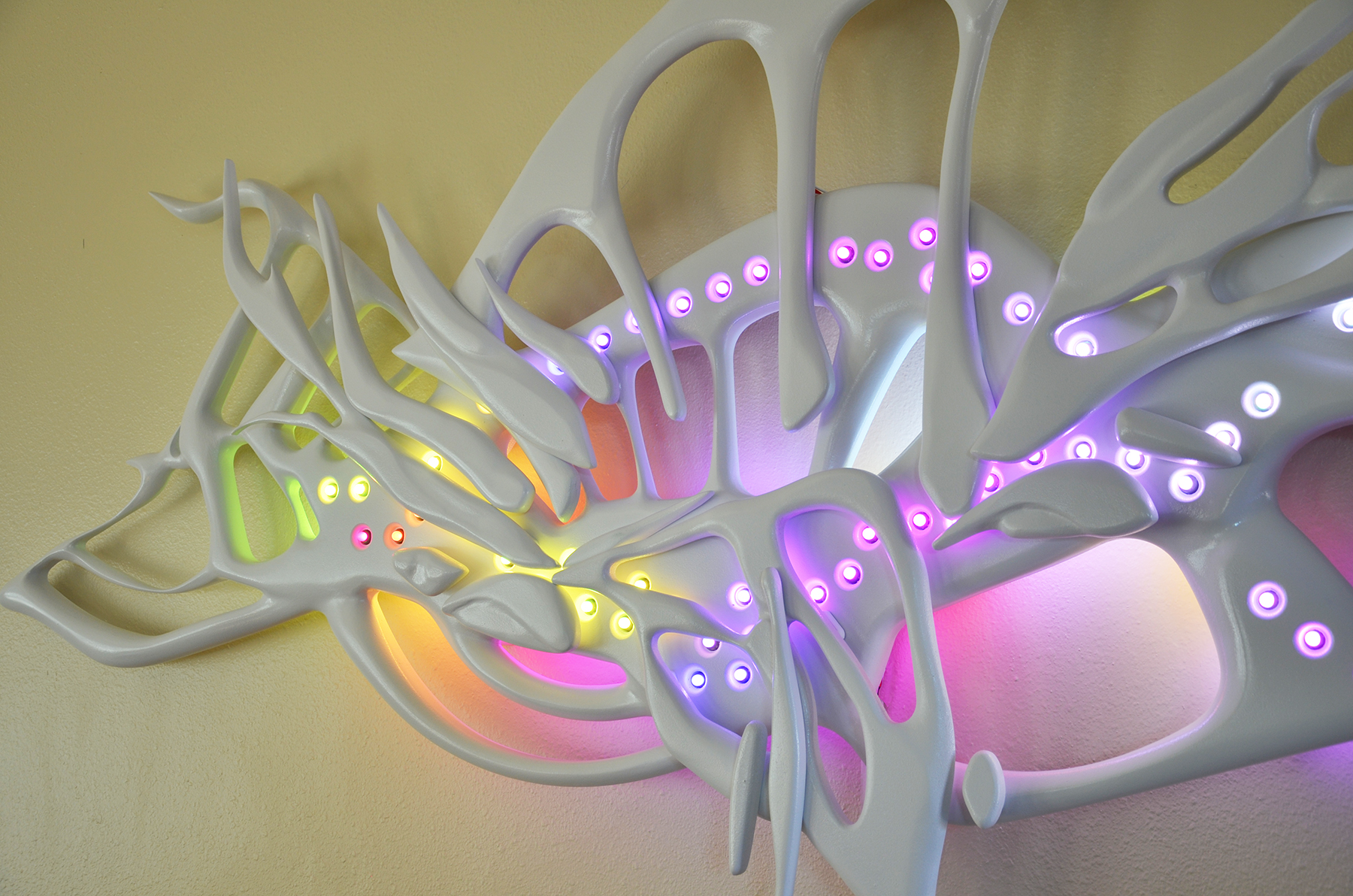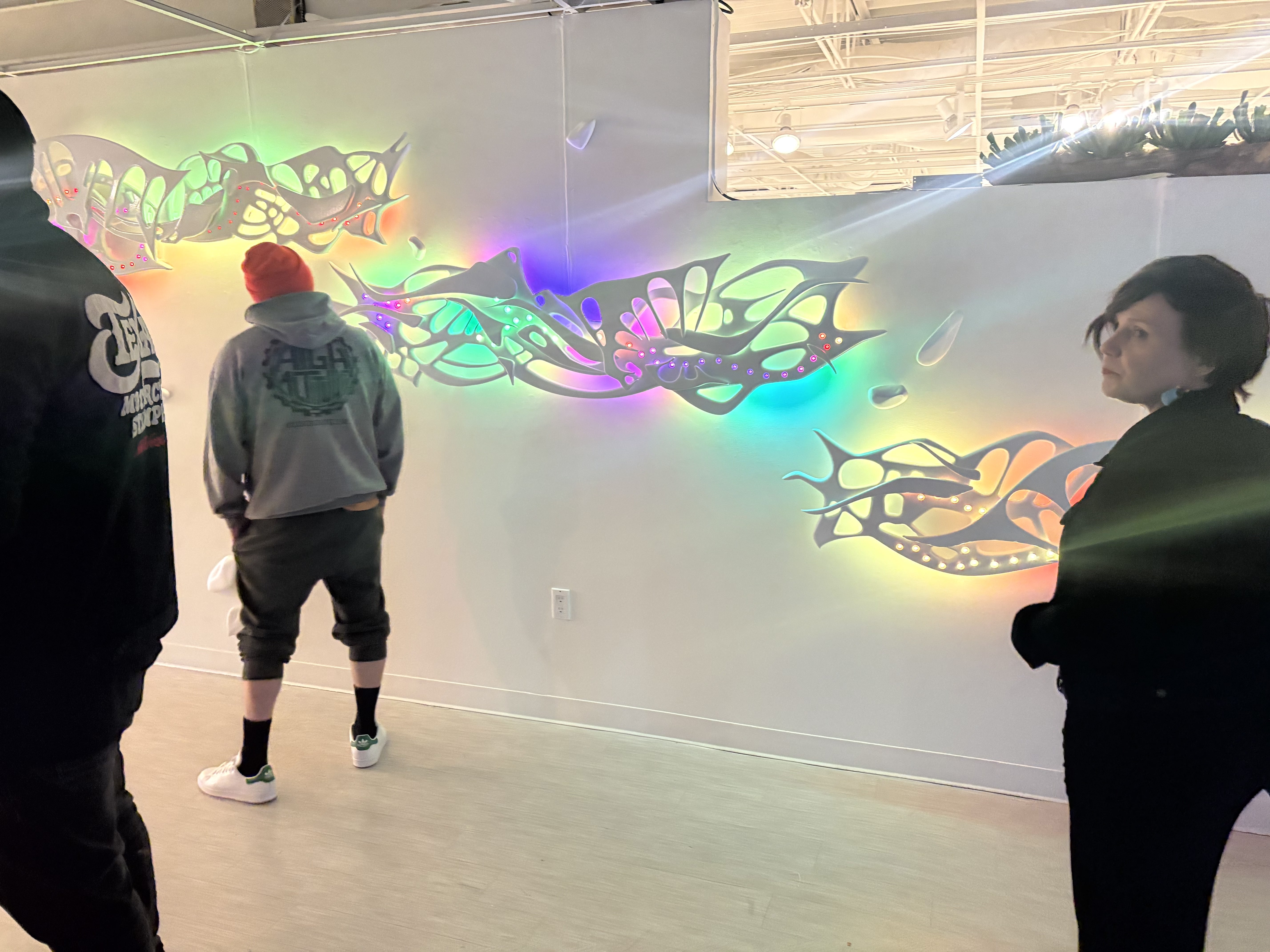 The exhibition brings together sculpture, light, sound and responsive technology to create immersive installations that shift with viewer movement and presence. Through this collaboration, Wagner’s large-scale sculptural style is paired with Luckey’s engineering and interactive design expertise to create a dynamic gallery experience.