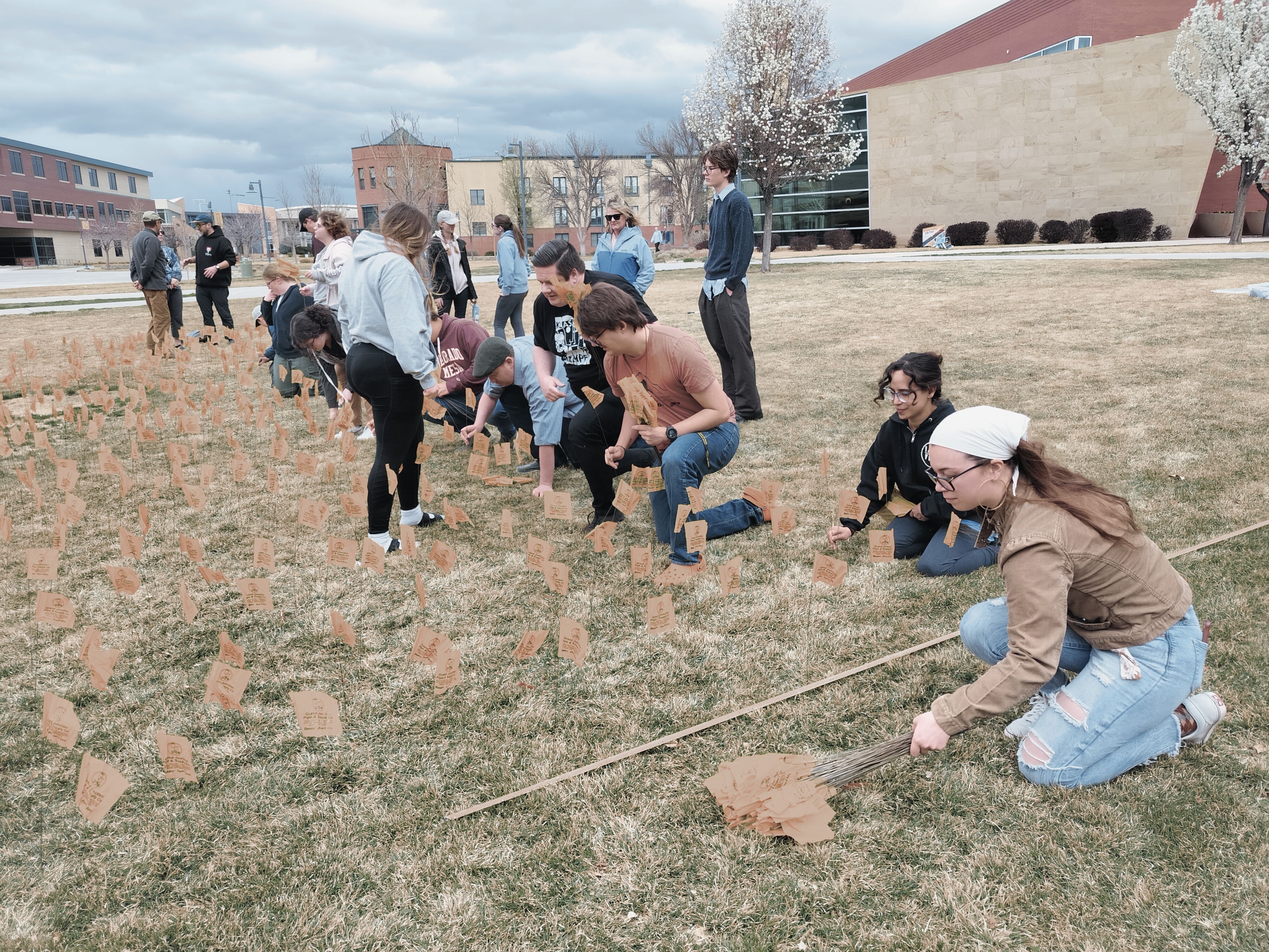 Students plant flags to commemorate Holocaust victims for CMU's Annual Holocaust Awareness Week